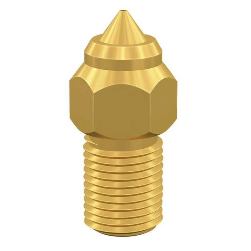 Material de alta conductividad térmica. Fabricada en latón, la boquilla asegura una transferencia de calor eficiente, permitiendo una extrusión uniforme y reduciendo atascos, lo que se traduce en acabados más limpios y precisos.