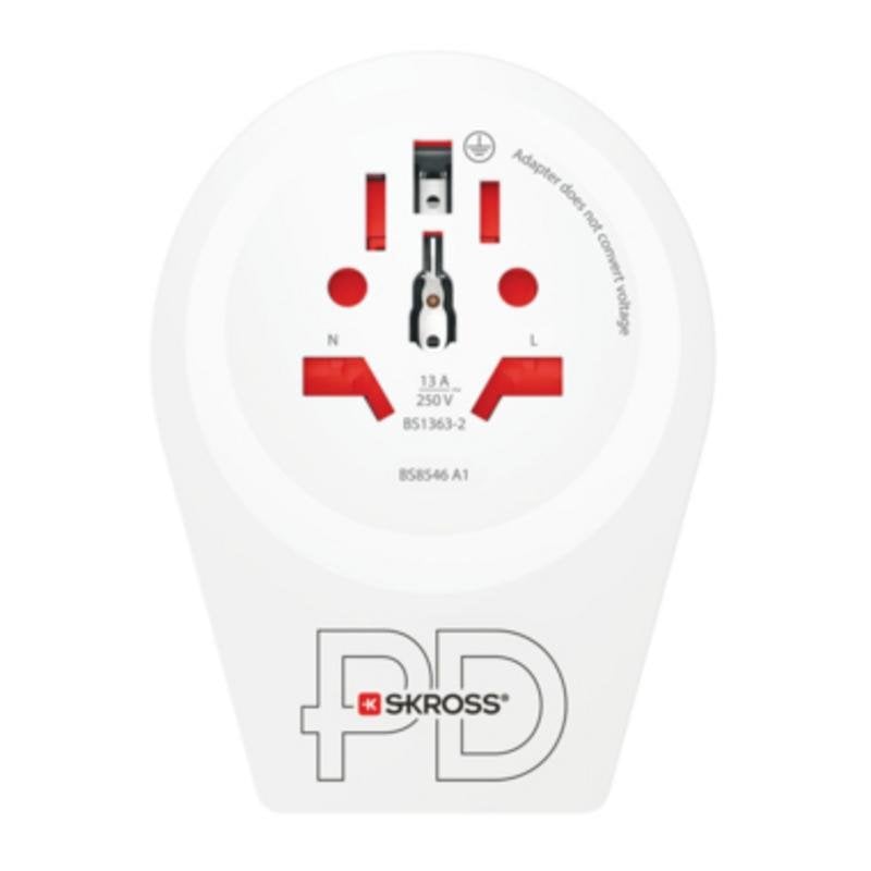 Viaja sin preocupaciones con el adaptador SKROSS USB-C PD, compatible con enchufes de todo el mundo para cargar tus dispositivos potentes dondequiera que vayas.