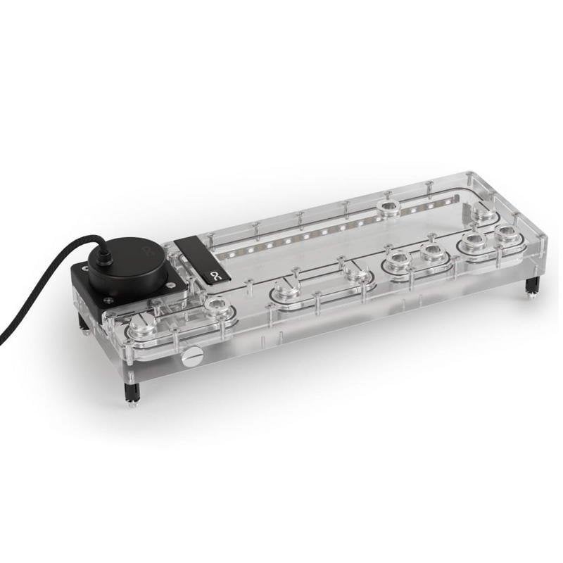 Gracias a su plataforma rediseñada, la instalación es mucho más flexible, facilitando la planificación y el mantenimiento incluso en circuitos complejos que enfrían CPU y varias GPU. Los racores G1/4" de latón cromado están integrados directamente en el acrílico, eliminando riesgos de fugas y asegurando un sellado perfecto. El puerto de drenaje lateral permite vaciar el circuito de forma sencilla y controlada, ideal para actualizaciones o mantenimiento.