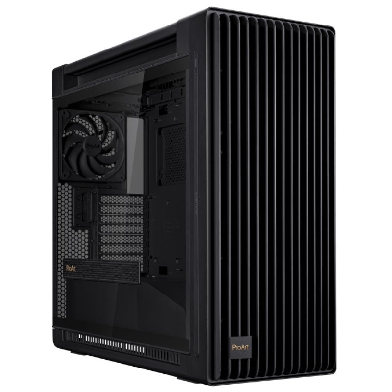 El chasis ProArt PA602 está diseñado para proporcionar un flujo de aire óptimo y una refrigeración mejorada: un sueño para los profesionales creativos que buscan flujos de trabajo que faciliten su concentración. Este chasis cuenta con un panel frontal diseñado para obtener la máxima entrada de aire, un grueso ventilador trasero preinstalado de 140 mm y dos ventiladores frontales de 200 mm, un concentrador de ventiladores integrado y compatibilidad con un radiador de 420 mm, por lo que ofrece un rendimiento de máximo nivel desde el primer momento.