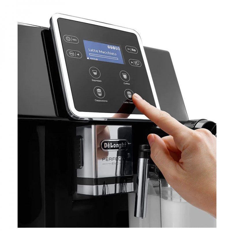 Las cafeteras espresso Perfecta EVO totalmente automáticas de De’Longhi están diseñadas para satisfacer todas las necesidades de café. Perfecta EVO ESAM420.40.B le ofrece diferentes opciones de entrega de leche y una selección de bebidas que se entregan con solo tocar un botón. También hay un menú de bebidas adicional y por supuesto Perfecta EVO ofrece la posibilidad de personalizar cualquier bebida ajustando el aroma y la cantidad de café en la taza a tu gusto personal.