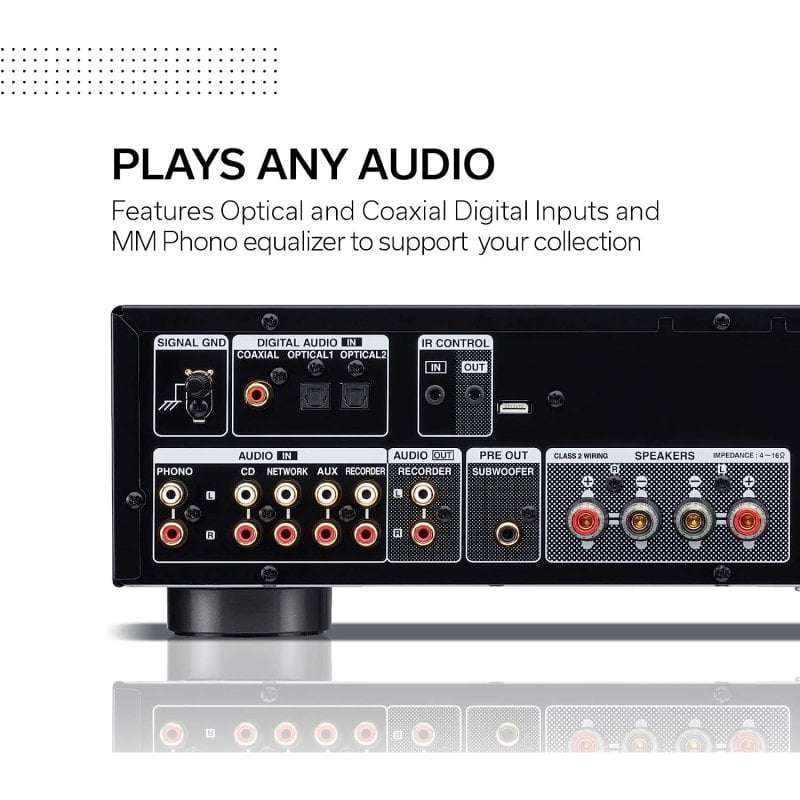 Diseñado para melómanos principiantes, el PMA-600NE de Denon es la mejor opción para aquellos que quieren crear su primer sistema de alta fidelidad de 2 canales. Gracias a sus entradas digitales y ecualizador de phono integrado, el PMA-600NE reproduce vinilos y audio de alta resolución con un sonido sumamente intenso e impactante. Podrás escuchar tu música favorita por Bluetooth o transmitir en streaming prácticamente cualquier canción. El convertidor D/A de 192 kHz/24 bits te permitirá escuchar tus contenidos de audio de alta resolución favoritos con profundos graves y detallados agudos.