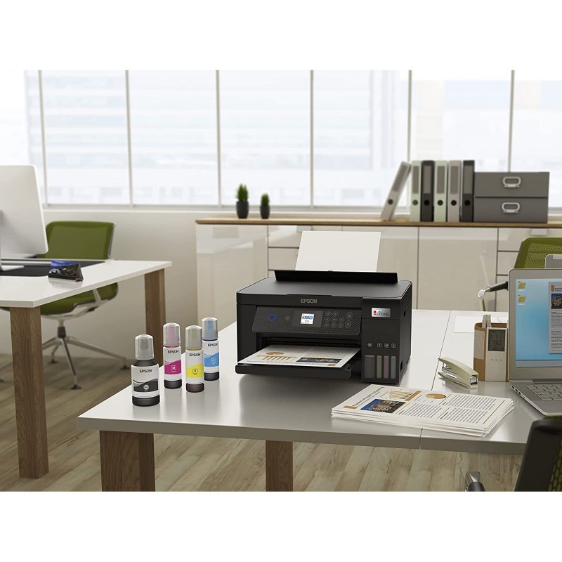 Perfecta para el hogar, esta impresora de inyección de tinta A4 con pantalla funciona mediante depósitos de tinta rellenables y se entrega con un juego de botellas de tinta equivalente a 72 cartuchos*. Las ventajas adicionales incluyen