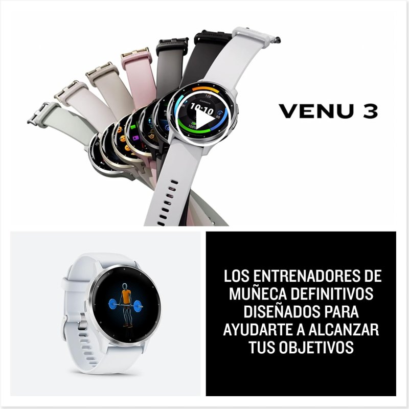 Venu 3, específicamente diseñado con funciones avanzadas de salud y ejercicio, y capacidad para hacer llamadas y enviar mensajes de texto, es mucho más que un smartwatch: es tu entrenador personal en la muñeca que te ayudará a alcanzar tus objetivos.