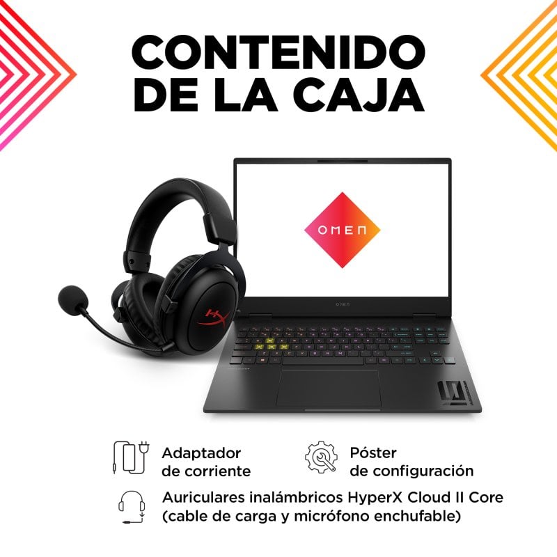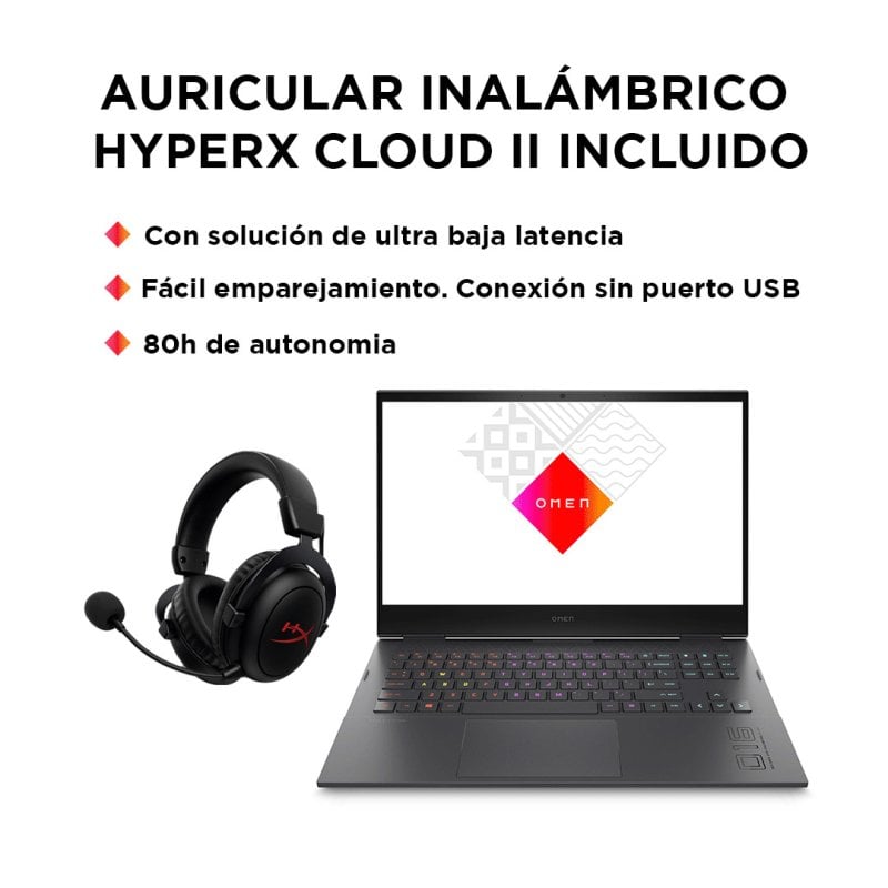 Portátil OMEN 16 transcend con solución de audio OMEN & HyperX. Este portátil incluye el auricular inalámbrico HyperX Cloud II Core: