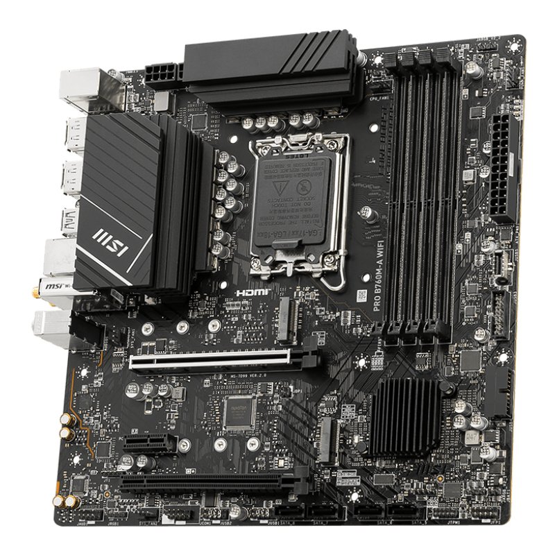 PRO B760M-A WIFI está diseñada con toneladas de herramientas flexibles y una conveniente solución Wi-Fi con versión de memoria DDR5.