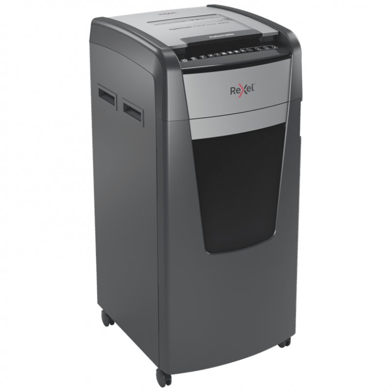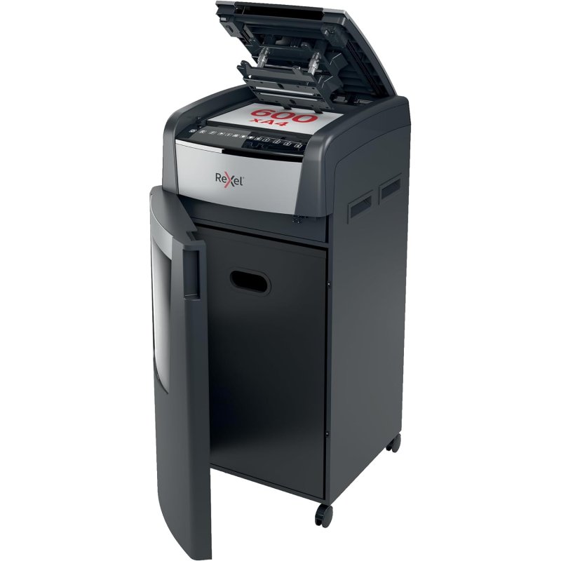 La destructora de corte en partículas Optimum AutoFeed 600X tritura automáticamente hasta 600 hojas de papel A4 (80 grs.) a la vez, en partículas P-4 (4×30 mm). Esta destructora de alimentación automática es una trituradora de oficina sofisticada, con una papelera extraíble de 110 litros. No es necesario alimentar manualmente el papel, ni quitar grapas y clips de papel primero, esta destructora de papel automática hará todo el trabajo por ti.