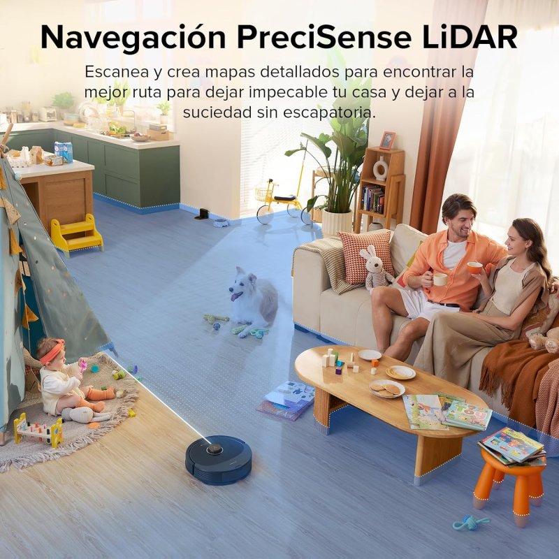 Utiliza un sistema de navegación láser LiDAR para mapear su hogar y crear un plan de limpieza eficiente. Esto significa que el robot puede limpiar su hogar de forma ordenada y completa, incluso en habitaciones complejas. También puede crear zonas de exclusión y barreras para evitar que el robot entre en áreas que no desea limpiar.