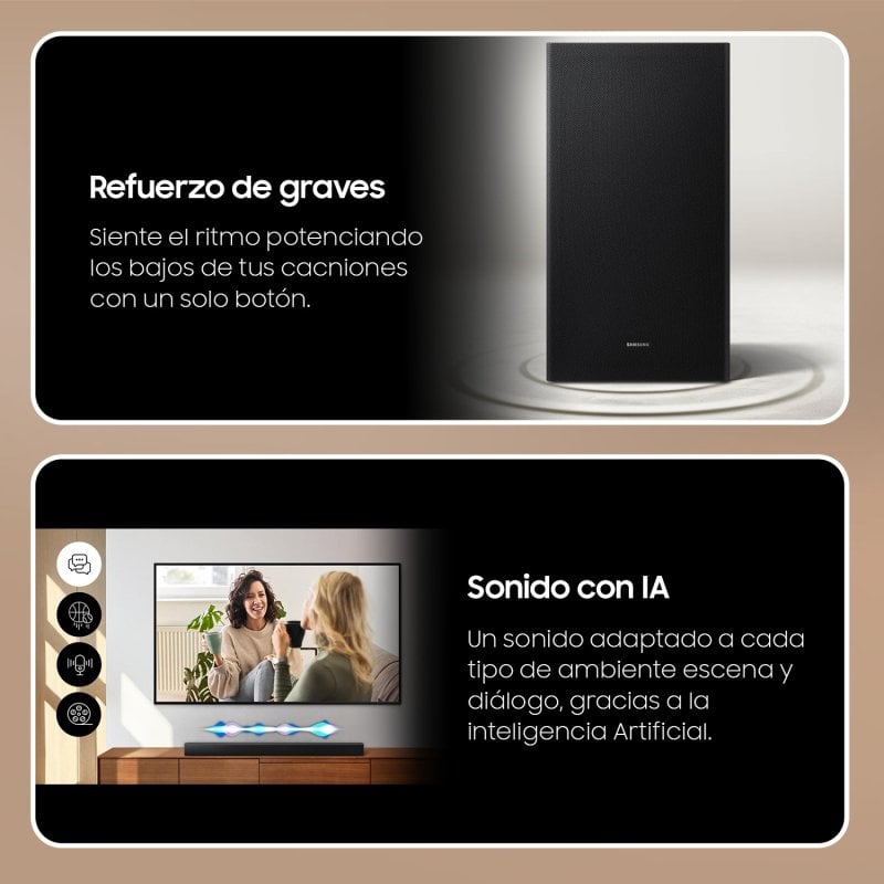 Barra de sonido Samsung HW-B650D Serie-B con 3.1 canales, subwoofer inalámbrico y un sonido más preciso de alta resolución con Dolby Atmos y DTS Virtual:X.