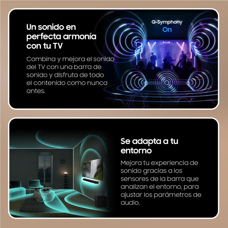 La mejor calidad de sonido con la barra de sonido Samsung HW-Q800D/EN y Dolby Atmos® gracias a sus 5 canales, 1 subwoofer que potencia los graves y 2 canales superiores. Un sonido envolvente gracias al primer Dolby Atmos® inalámbrico del mundo.