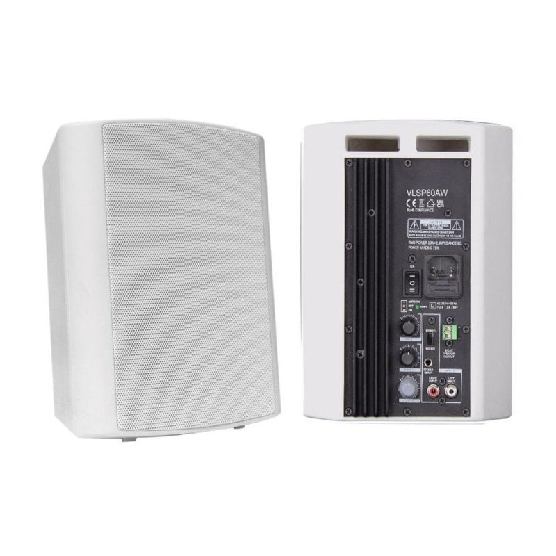 Gracias al montaje en pared y la carcasa robusta en acabado blanco, se adaptan a instalaciones profesionales donde la estética y la funcionalidad técnica importan. Su tecnología de conectividad cableada (RCA, minijack y Phoenix) proporciona compatibilidad universal con mesas de mezclas, sistemas audiovisuales y reproductores multimedia, eliminando riesgos de latencia. El control de volumen rotatorio y las múltiples entradas (3,5 mm, 6,35 mm y RCA) permiten integración directa y sencilla, sin necesidad de accesorios adicionales.