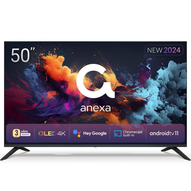 El televisor Smart TV Anexa SMART50C01UGQ está equipado con una pantalla QLED 4K de 50 Pulgadas (126 cm) con resolución de 3840 x 2160 píxeles y HDR 10. Este modelo dispone de Google Chromecast integrado y Android 11, impulsado por inteligencia artificial y asistente de voz Google Assistant, que asegura una compatibilidad con el ecosistema Google, incluyendo YouTube, Netflix, Disney +, HBO Max, Prime Video, y más de 5.000 aplicaciones descargables desde Google Play Store. Además, el televisor dispone de sintonizador digital de televisión para canales HD de segunda generación DVB-T2/C/S2 con televisión híbrida HbbTV, y cuenta con 3 puertos HDMI, 2 USB, entrada de vídeo compuesto AV, salida de audio digital óptica, salida de auriculares y puerto de interfaz común CI, Ethernet RJ45, Wifi, Bluetooth.