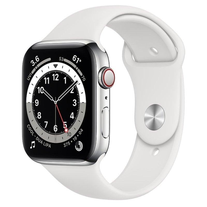 Apple Watch Series 6 GPS + Cellular 44mm Acero Inoxidable en Plata Correa Deportiva Blanca