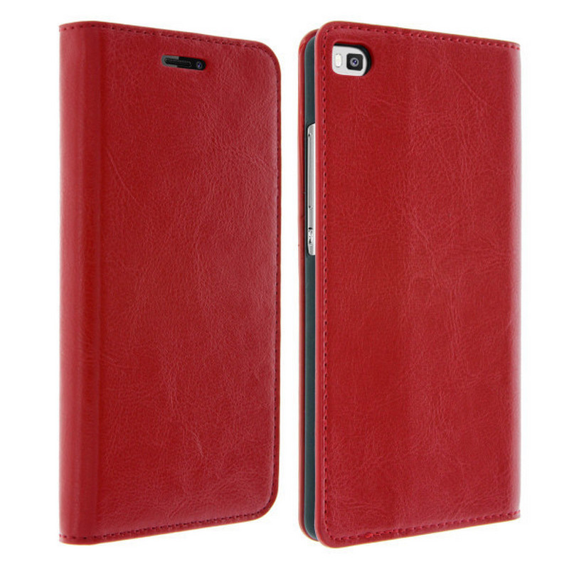 Funda de piel auténtica para Huawei P8. Protección total contra golpes y arañazos. La tapa posee tres ranuras para tarjatas + bolsillo lateral para billetes. Puertos accesibles. Función soporte.