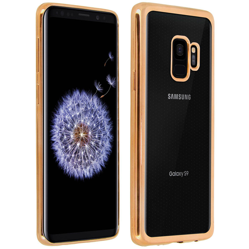 • Avizar Funda de Silicona Transparente con Bordes Dorado Metalizado para Samsung Galaxy S9 Plus