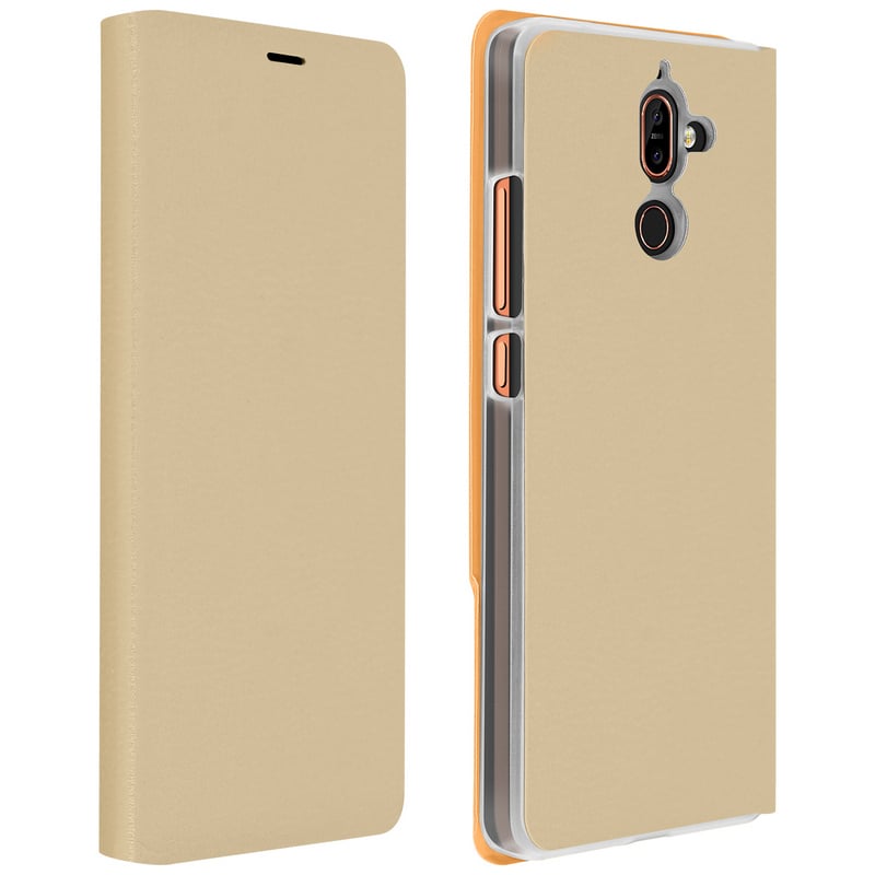 Avizar Funda Flip Book Dorada para Nokia 7 Plus