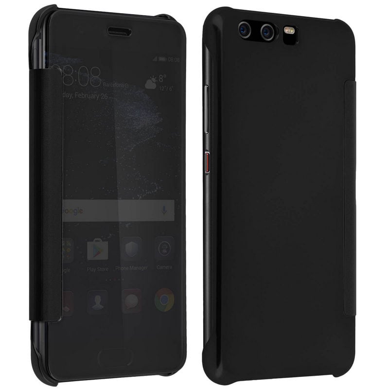 Avizar Funda Libro Translúcida Efecto Espejo Negra para Huawei P10