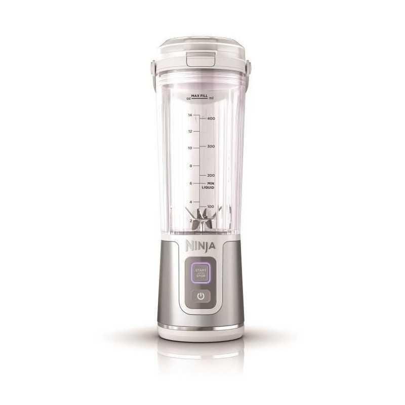 | Contenido de la caja | Base motor Ninja Blast con cuchilla integrada, vaso 530 ml, tapa con pico vertedor anti-fuga, cache-lame, tapa de vaso, cable de carga USB-C y libro de recetas |