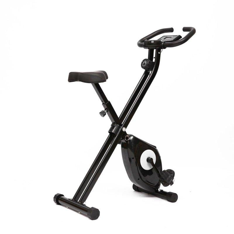 La resistencia magnética de 8 niveles te permite ajustar la intensidad de tu entrenamiento de forma silenciosa, ideal para no molestar en casa. La pantalla LCD multifunción registra en tiempo real tu velocidad, tiempo, calorías consumidas y frecuencia cardíaca, ofreciendo un control completo de tu progreso. El ajuste ergonómico incluye un sillín regulable en 7 alturas y pedales con correas de seguridad, garantizando una postura cómoda y segura durante cada sesión. Su diseño en X facilita el plegado rápido, convirtiéndola en la solución perfecta para entrenar en espacios limitados sin sacrificar calidad. Descubre cómo esta bicicleta puede transformar tu rutina de fitness doméstica.