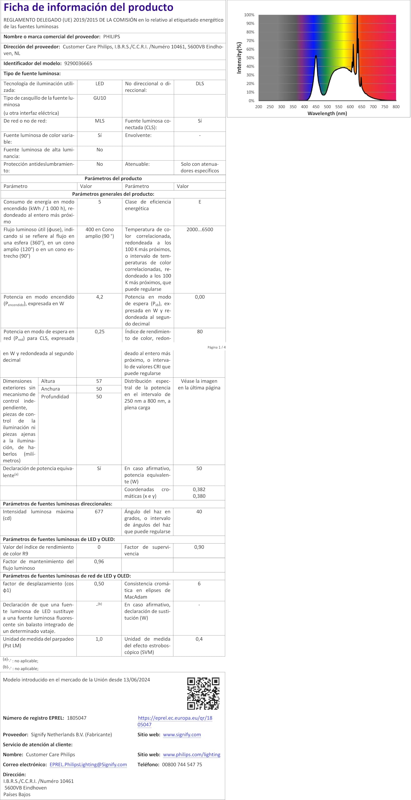 Especificaciones Bombillas inteligentes Philips Hue GU10