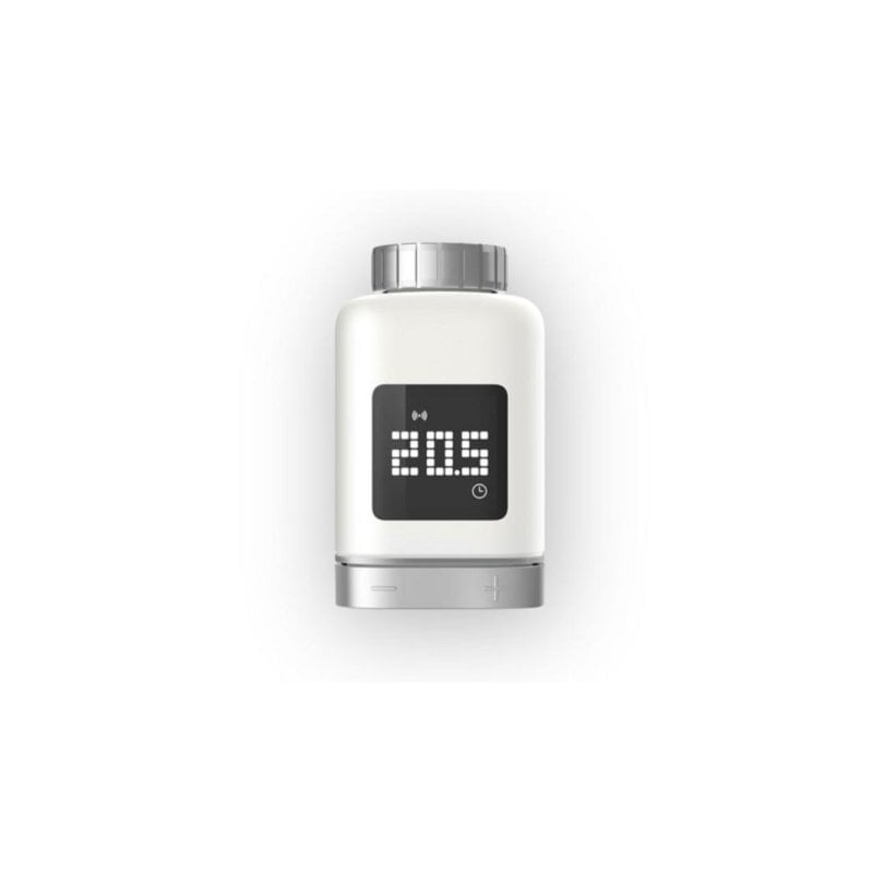 Autonomía y eficiencia. Funciona con dos pilas AA, ofreciendo hasta 2 años de duración y bajo consumo energético. El sistema es programable y permite la integración con aplicaciones compatibles para una experiencia domótica avanzada.