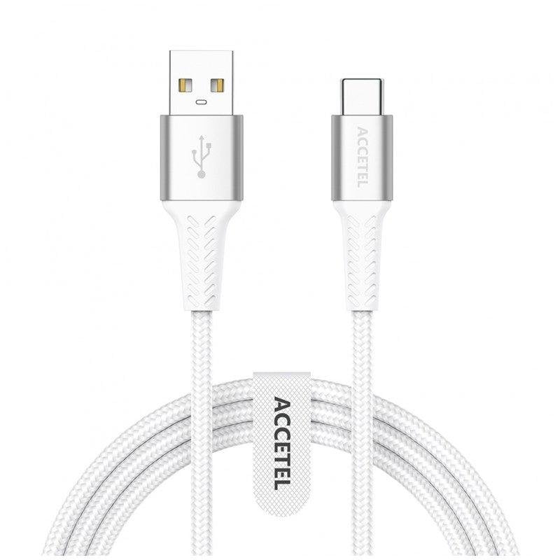 Cable USB-A a USB-C Accetel Cu2807 1m Nailon Blanco 3.0A 480Mbps
