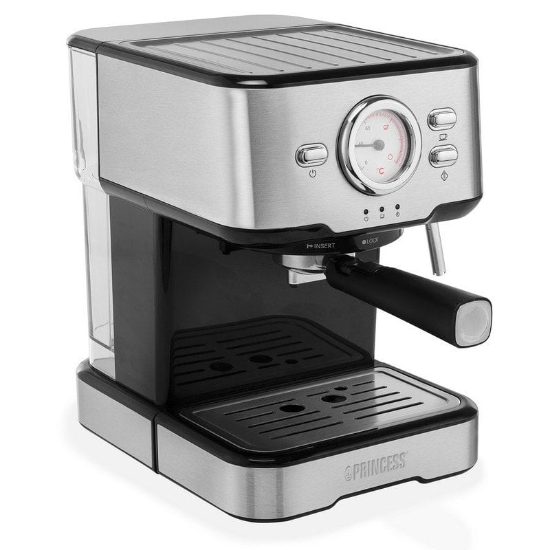 Cafetera Espresso Manual Princess 249415 1.5L 20 bares bandeja calienta tazas cápsulas y café molido