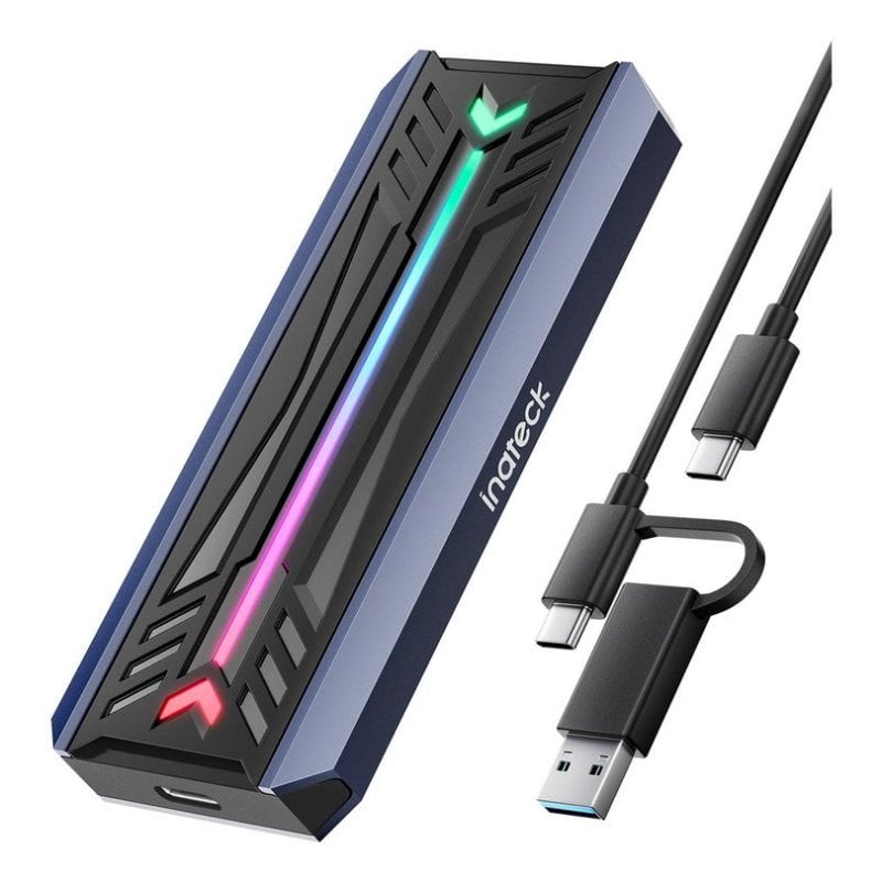 La Inateck FE2024 redefine la movilidad y el rendimiento en almacenamiento externo. Compatible con SSD M.2 NVMe y SATA, permite aprovechar velocidades de transferencia de hasta 10 Gbit/s gracias a su interfaz USB 3.2 Gen 2 Tipo C. Su diseño en aluminio negro y gris garantiza una óptima disipación térmica y resistencia, mientras que la iluminación RGB aporta un toque distintivo y configurable para entornos gaming o setups profesionales.