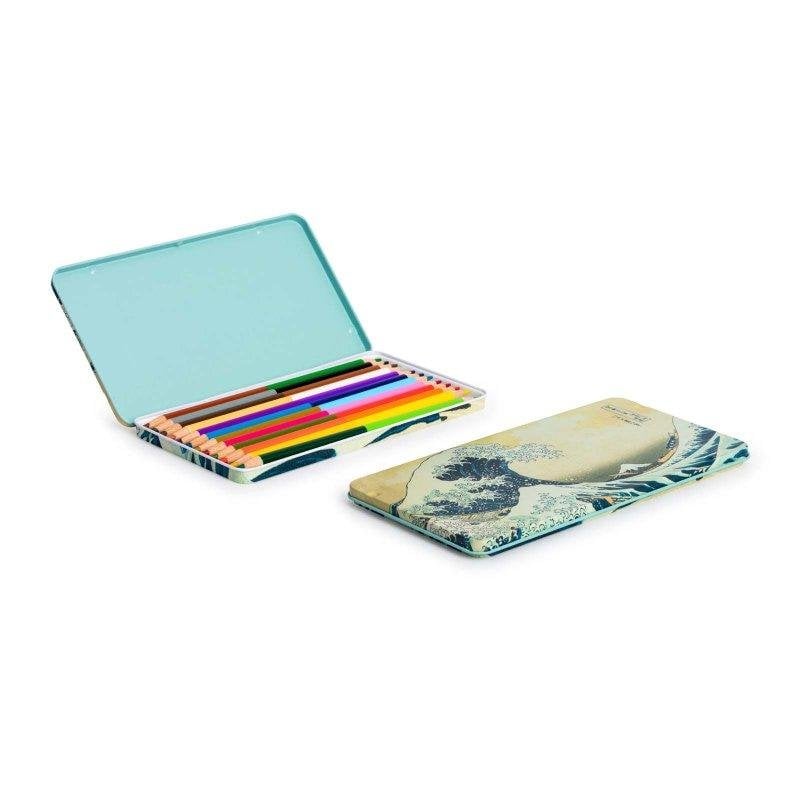Caja Metálica con 12 Lápices de Doble Punta Javier La Ola