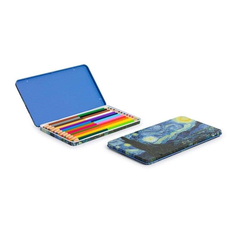Caja Metálica con 12 Lápices de Doble Punta Javier Noche Estrellada
