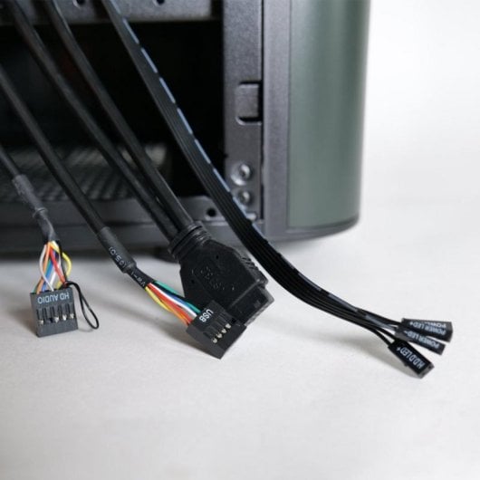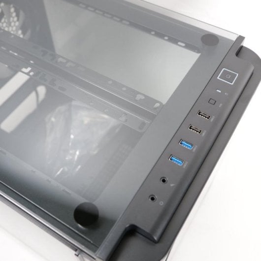 Acceso y control intuitivo. El panel frontal incorpora dos USB 3.0, dos USB 2.0, conector de audio y micrófono, y botones dedicados de encendido (retroiluminado), reinicio y control de iluminación RGB, garantizando un manejo completo en todo momento.