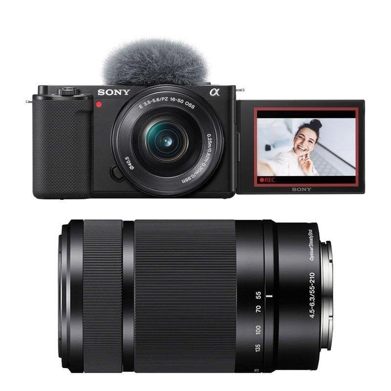 Incluye dos objetivos: uno estándar 16-50 mm (gran angular/zoom) y un teleobjetivo 55-210 mm, cubriendo desde tomas de grupo y paisajes hasta deportes o naturaleza distante. La montura Sony E te permite ampliar a más de 60 ópticas adicionales según tus necesidades.