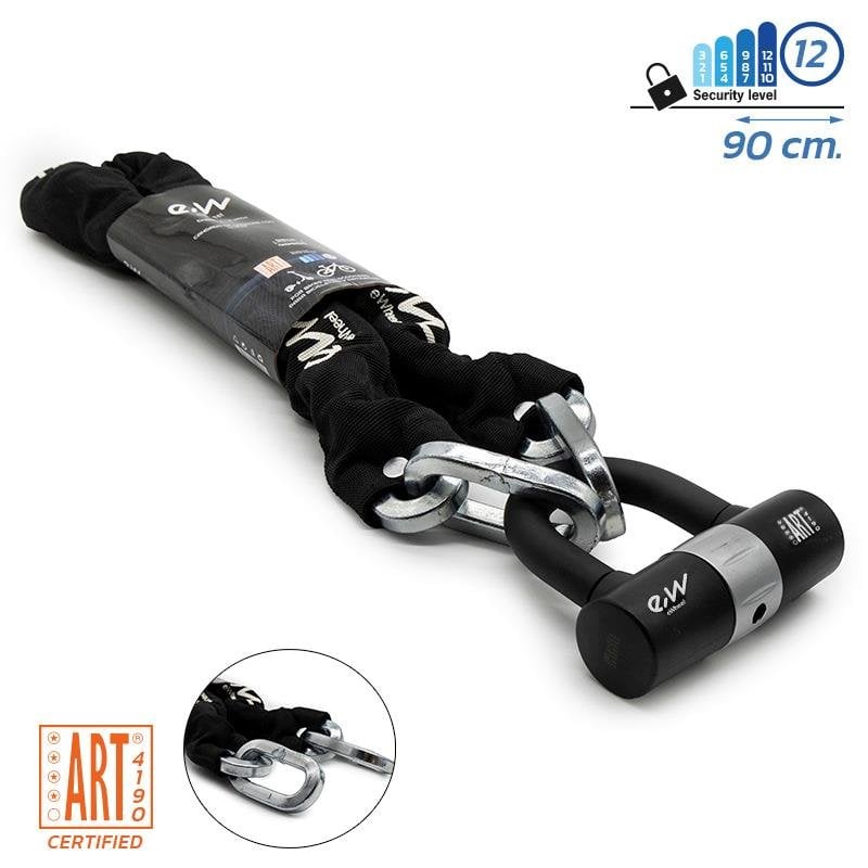 Este candado con llave EWLK011 destaca por su excepcional nivel de seguridad: cuenta con una puntuación máxima de 12 sobre 12 y una certificación ART de 4 estrellas, válida para seguros antirrobo. Fabricado con materiales ultraresistentes, es ideal para proteger bicicletas o patinetes en zonas de alto riesgo. Su sistema de cierre robusto proporciona tranquilidad incluso en estacionamientos prolongados.