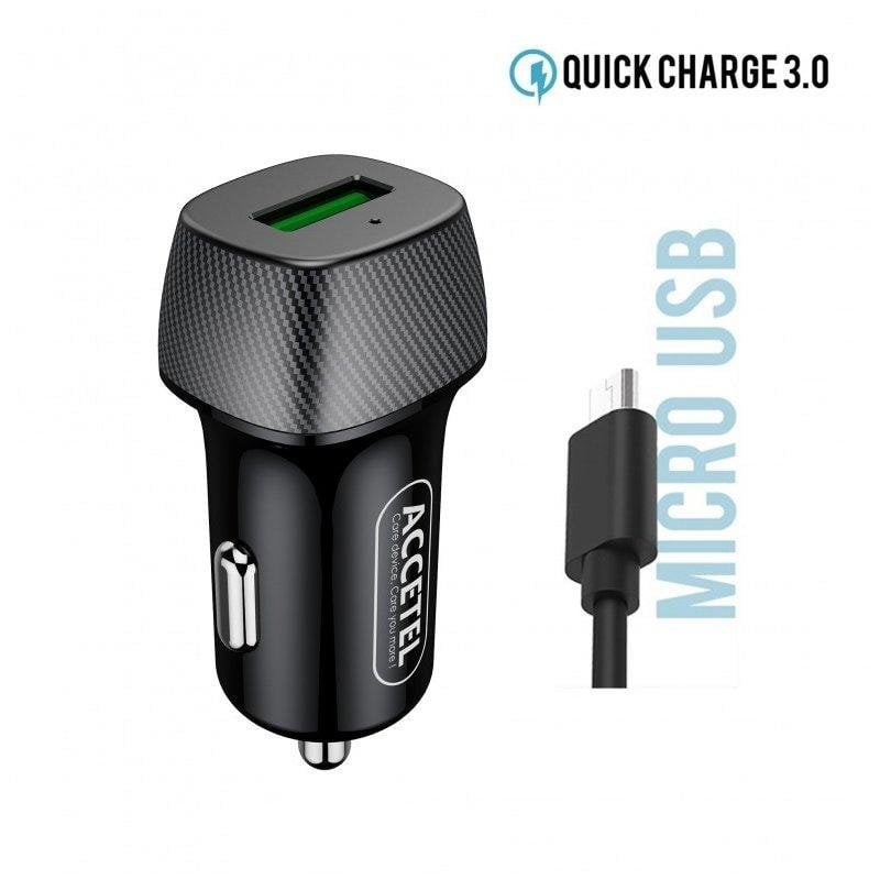 Cargador de coche Accetel CC284 carga rápida QC3.0 18W cable micro USB