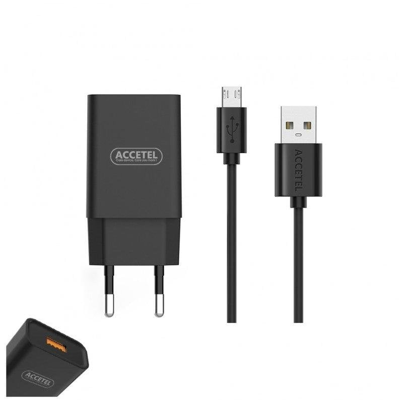 Cargador de pared Accetel AC404 carga rápida QC 18W Micro USB negro
