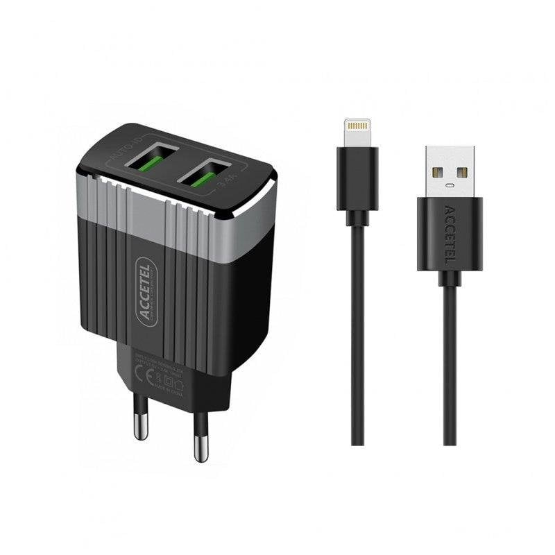 Cargador de pared Accetel AC502 Dual USB 3.4A con cable Lightning 1 m