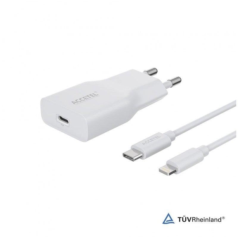 Cargador de pared Accetel Ac723 Ultraslim 20W USB-C PD con cable USB-C a Lightning