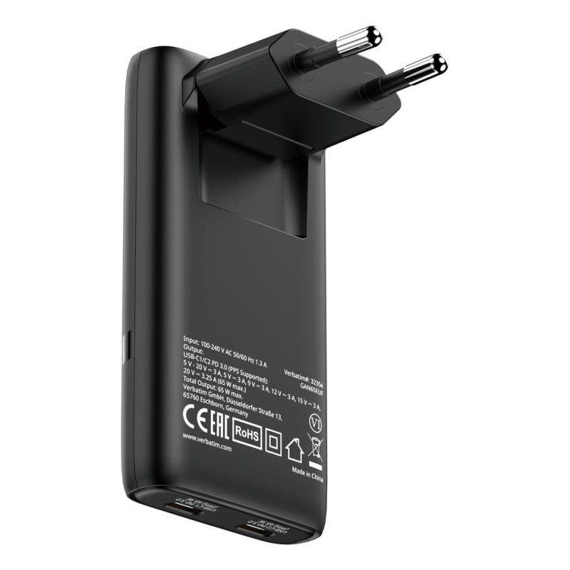 Cargador Verbatim 32354 65W USB-C GaN Negro carga rápida Power Delivery 3.0
