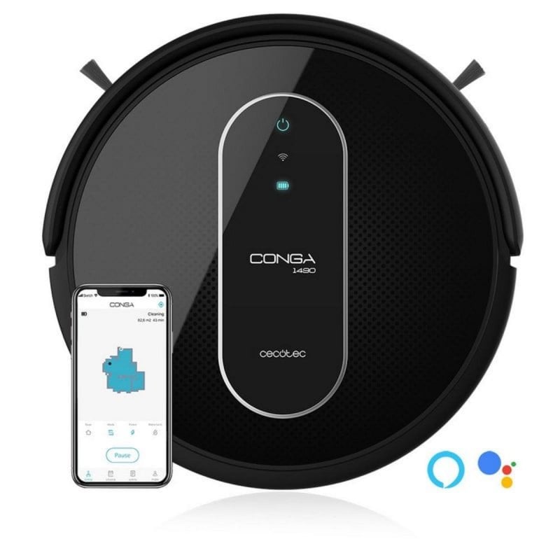 Conectividad: conexión WiFi y control total desde la aplicación Conga. Permite programar rutinas, ajustar la potencia de aspirado y fregado, y visualizar el historial y mapa de limpieza. Compatible con asistentes de voz Alexa y Google Assistant para órdenes como iniciar o detener limpieza, regreso a base o localizar el robot.