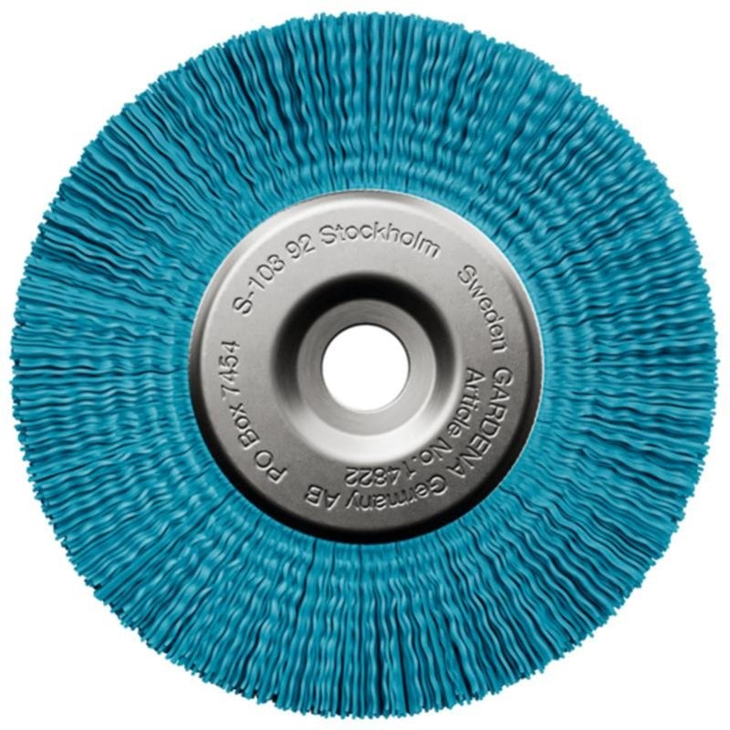 El cepillo de maleza de nailon Gardena limpia juntas de superficies delicadas con eficacia y sin dañarlas, ideal para tu barredora eléctrica.