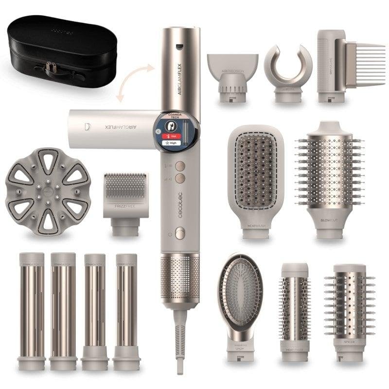 Cepillo moldeador Cecotec AirGlam 14in1 Flex Champagne 1400W con 14 accesorios y pantalla digital