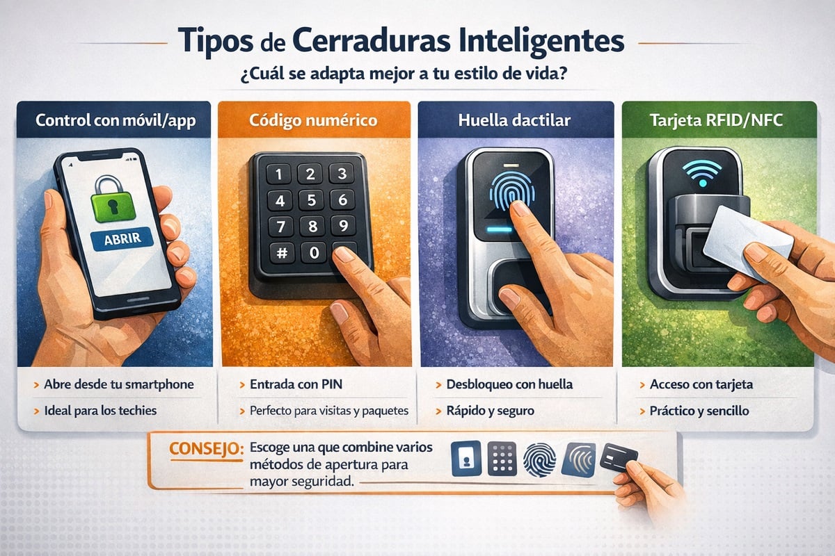 No todas las cerraduras inteligentes funcionan igual. Tu forma de vida determina qué tipo de apertura te conviene más: