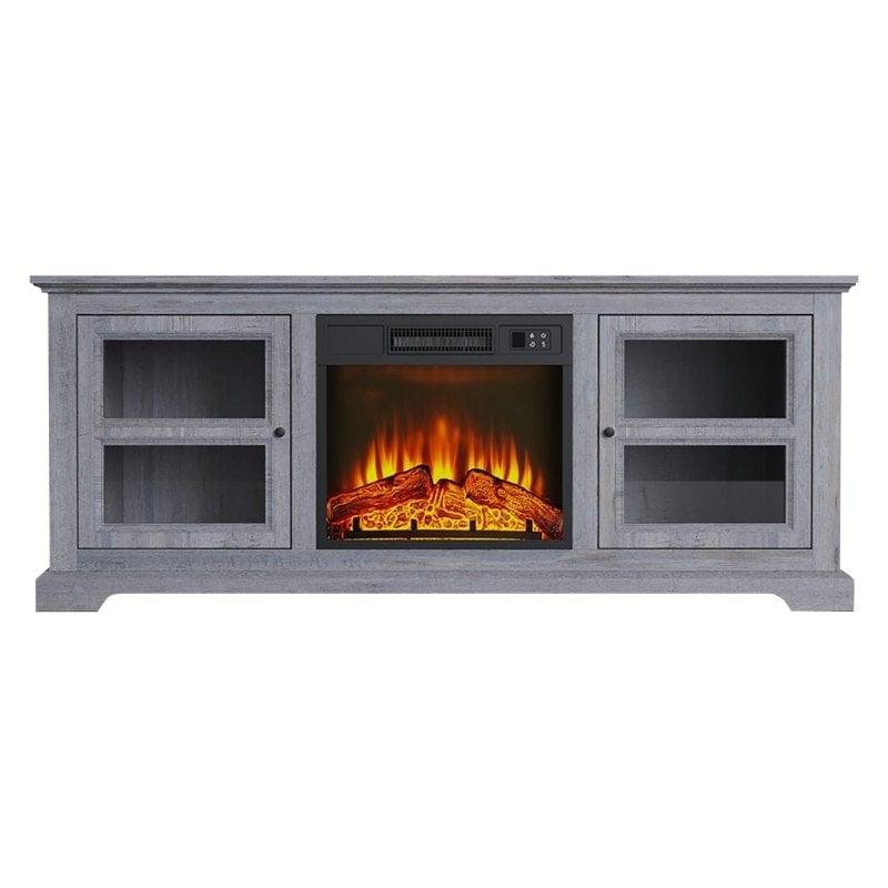 Chimenea Eléctrica Con Mueble Aparador Rustico Color Gris