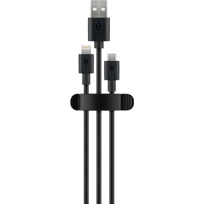 Clip organizador de cables Goobay 70685 negro set 3 autoadhesivo