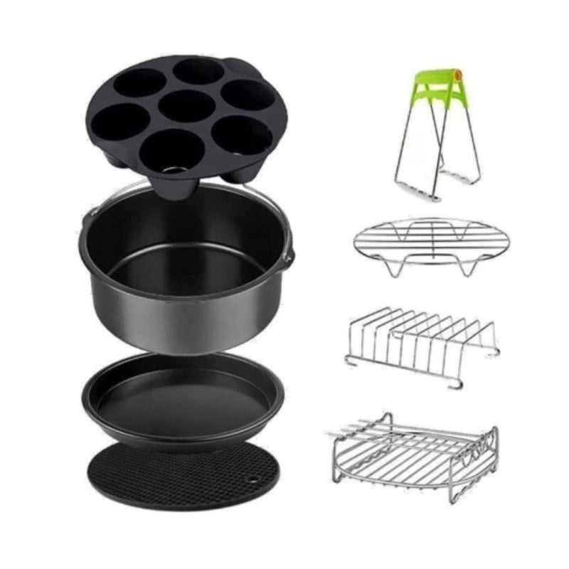 El conjunto de accesorios para freidoras de aire COMELEC AFA 8000 es la solución perfecta para ampliar las posibilidades de cocción en tu freidora de aire. Con este completo conjunto, podrás preparar una variedad de platos deliciosos con facilidad. Este conjunto incluye moldes en diferentes alturas, un estante para asar sin grasas, pinchos de acero inoxidable, un molde de silicona para hornear muffins y mucho más. ¡Convierte tu freidora de aire en una verdadera cocina multifuncional!