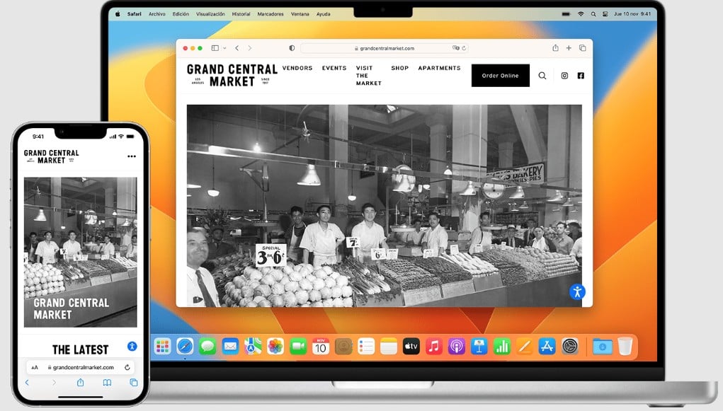Handoff te permite empezar una tarea en un dispositivo y continuarla en otro. Es compatible con Safari, Mail, Pages, Mensajes y más.