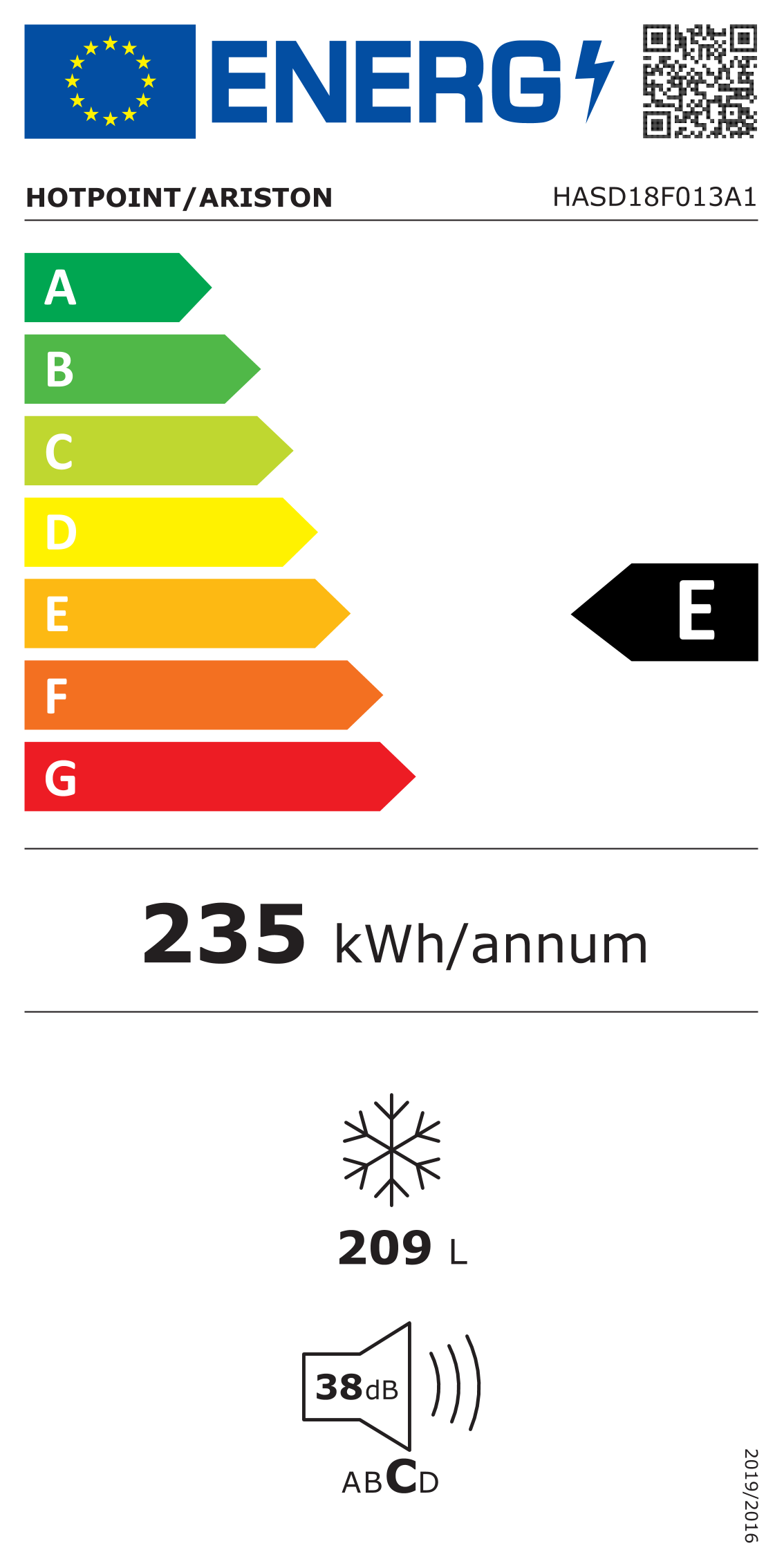 | Clase de eficiencia energética | E (A-G) |
