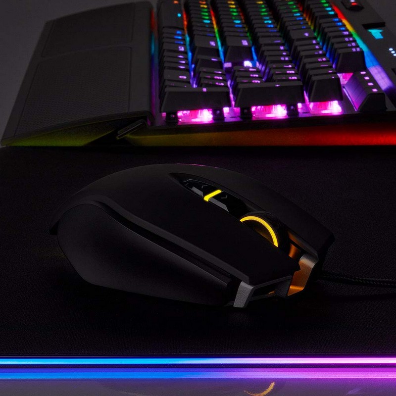 Utiliza el sistema avanzado de ajuste de peso para determinar el centro de gravedad que se adapta a tu estilo de juego y aprovecha la potencia del software CUE para una configuración avanzada de los botones, la programación de macros y una personalización de la retroiluminación RGB en tres zonas.