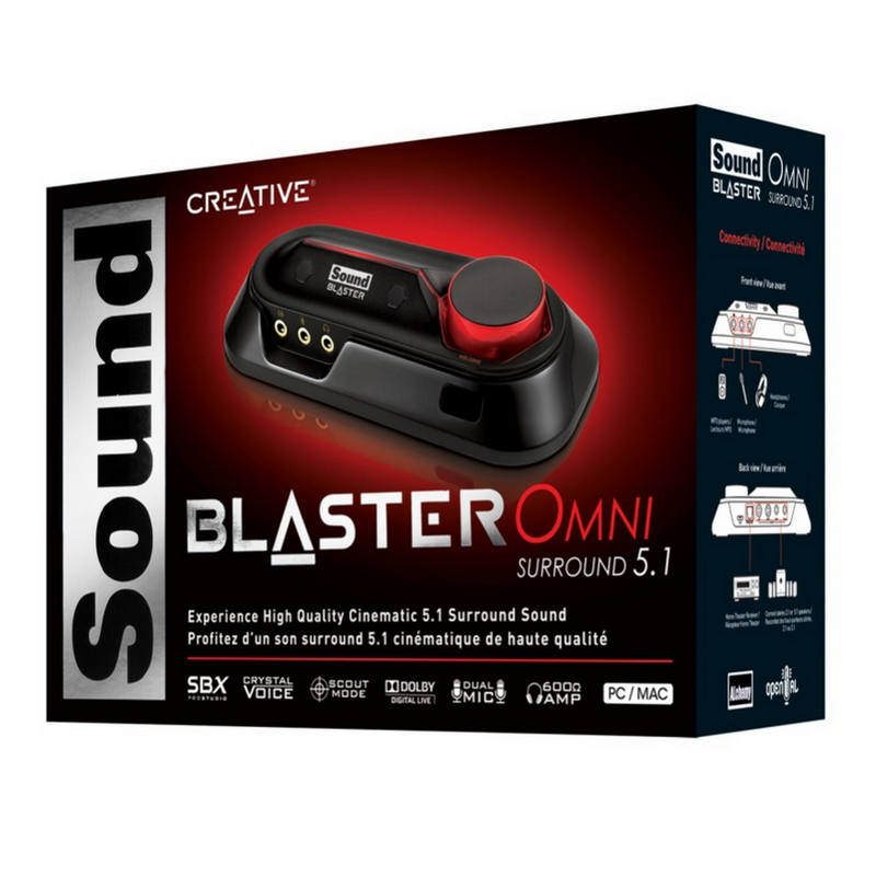 El conjunto de micrófono dual incorporado para disfrutar de comunicaciones de voz nítidas, las tecnologías de audio SBX Pro Studio personalizables y el amplificador de auriculares de 600 ohmios de calidad de estudio convierten a la Sound Blaster Omni Surround 5.1 en la tarjeta ideal para cualquiera que desee mejorar el audio de su PC o Mac.