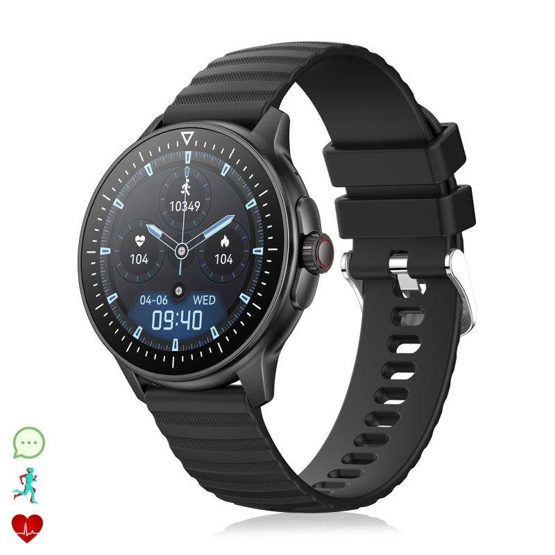 El smartwatch Dam Electronics ZW45 está diseñado para quienes buscan un dispositivo inteligente que integre funciones avanzadas de salud y comunicación en un formato ultrafino y elegante. Su pantalla táctil de 1,39 pulgadas con resolución 360x360 px ofrece una visualización clara y fluida, mientras que la corona multifunción facilita la navegación rápida e intuitiva. Gracias a su conectividad Bluetooth BLE 5.1, podrás recibir notificaciones de aplicaciones y llamadas directamente en la muñeca, manteniéndote siempre conectado sin necesidad de sacar el móvil.